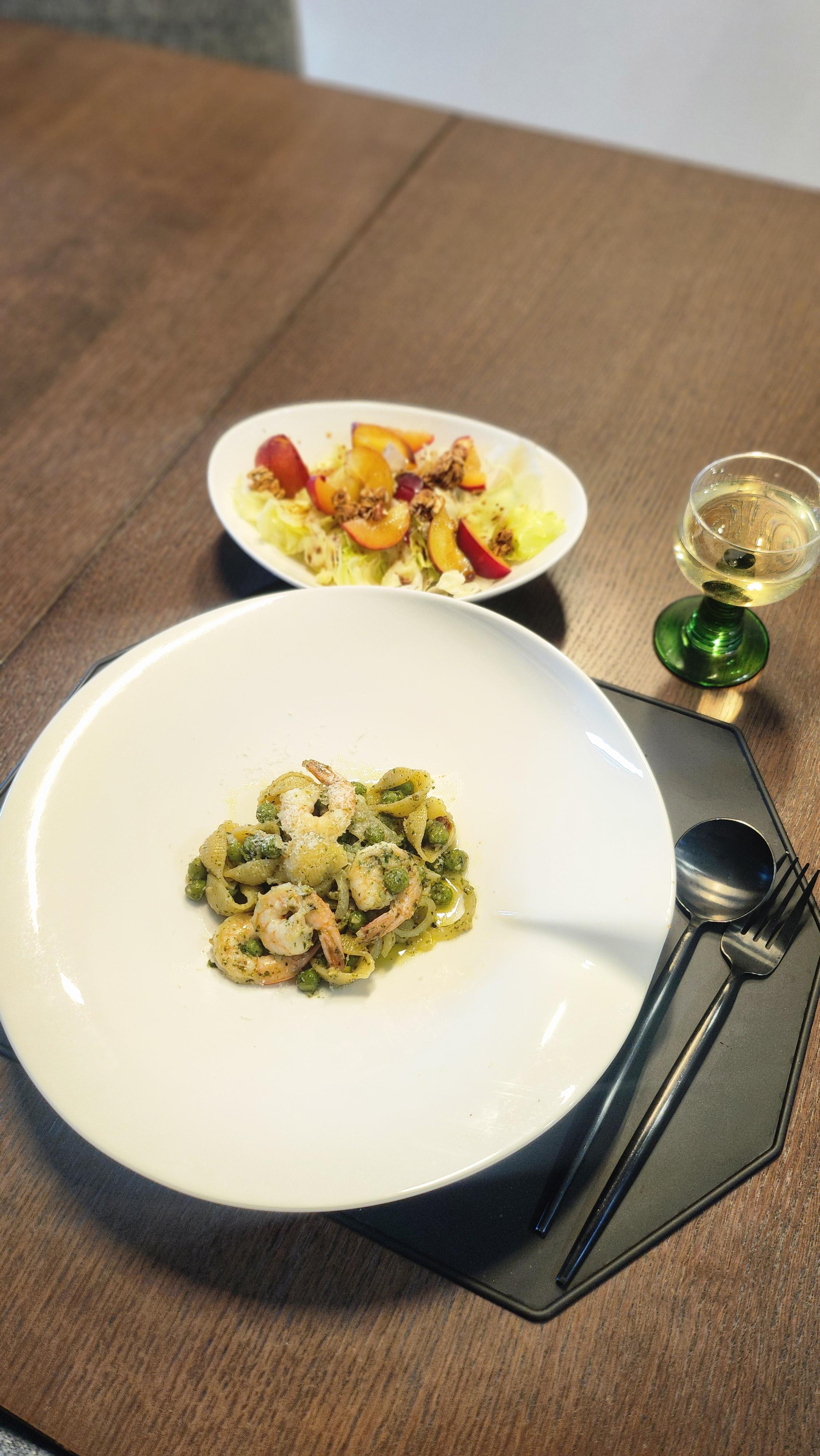 🌿 새우와 완두콩으로 만든 바질 그린파스타
